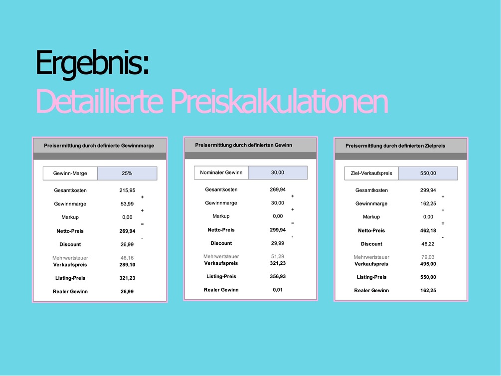 Produktpreis-Berechnung | Berechnungsmodell für Verkaufspreise | Excel Vorlage