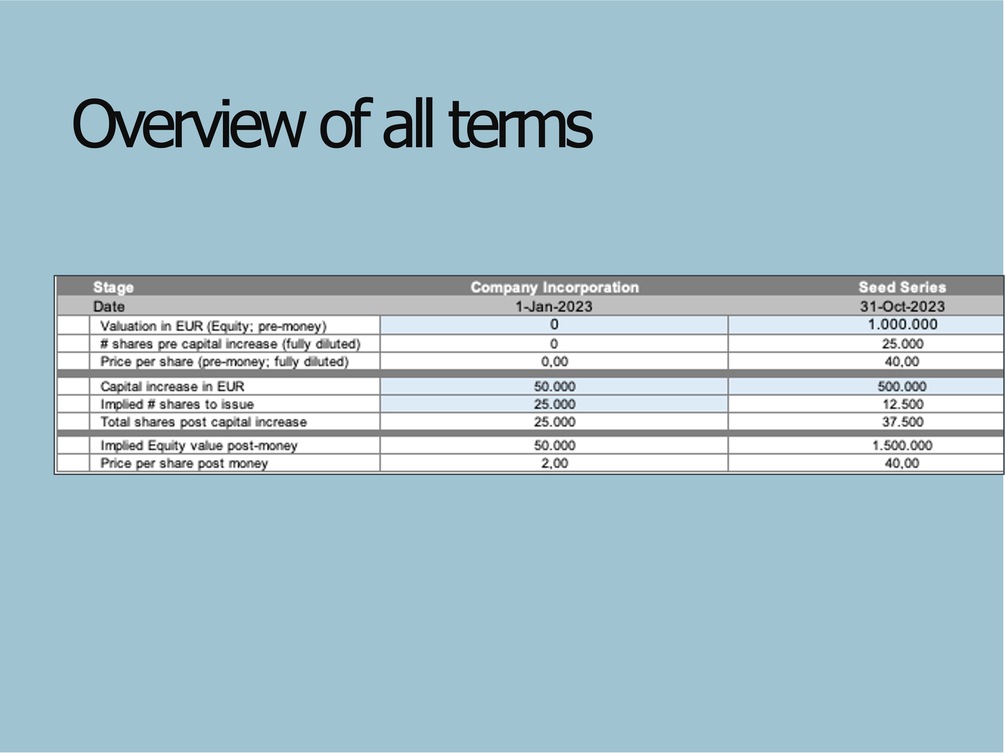 The cap table provides an overview of shareholdings and dilution for: