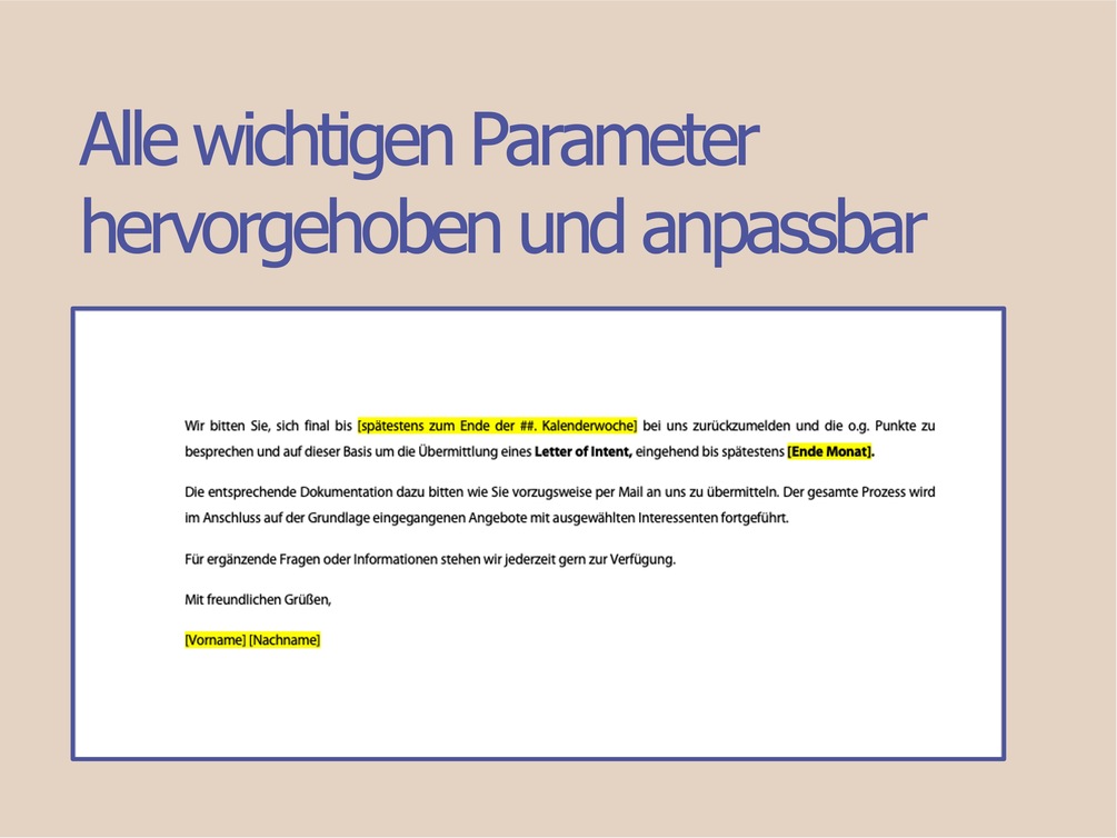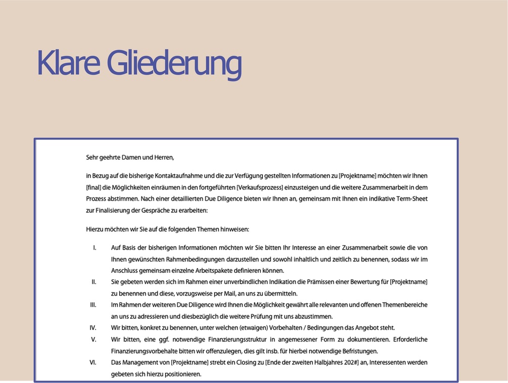 Prozessbrief für den Verkaufsprozess von Unternehmen - Prozessbrief Vorlage - in Deutsch | M&A Dokument