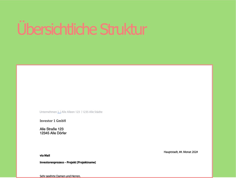 Vorlage für einen Prozessbrief im Rahmen eines Investorenprozesses von Unternehmen