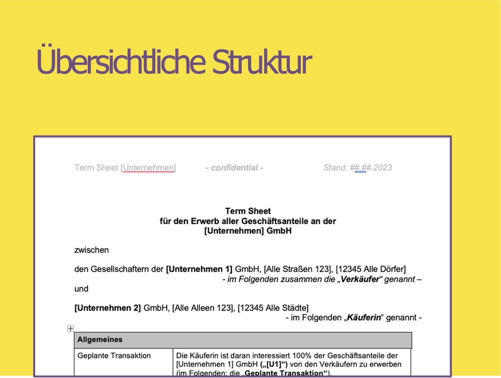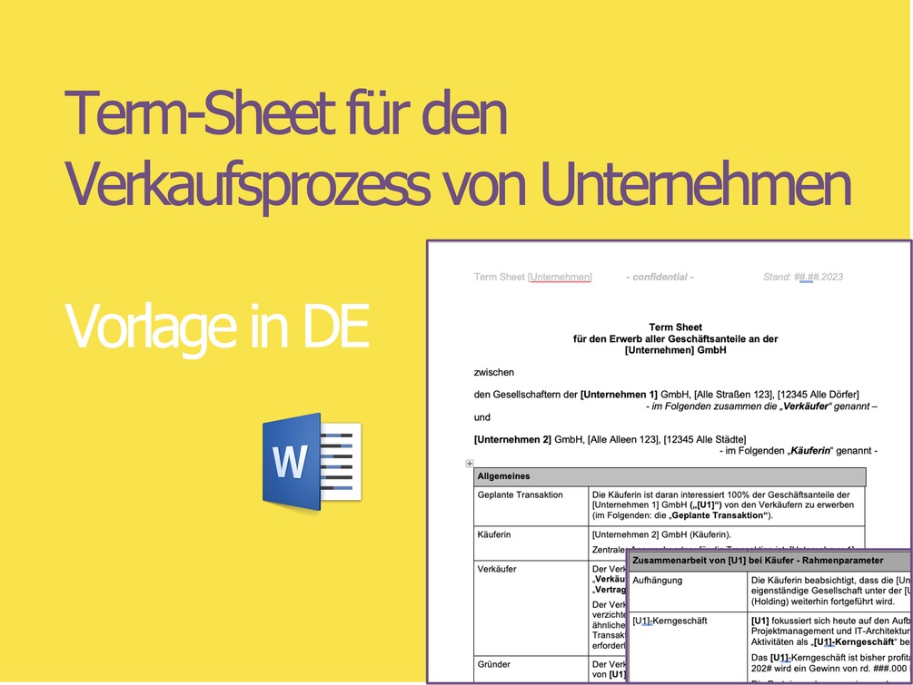 Term-Sheet für den Verkaufsprozess von Unternehmen - Term-Sheet Vorlage - in Deutsch | M&A document